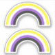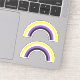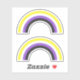 Adesivos de vinilo cortados por medida, com dois arco-íris nas cores da bandeira do orgulho não-binário. Uma bandeira amarela, branca, roxa e preta do movimento do orgulho não binário