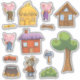 Aprecie a sua pequena com este pacote de 14 adesivos de ilustrações de desenho animado dos Três Pequenos Porcos.
