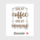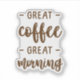 Adicione personalidade ao seu espaço com estes adesivos Ótimo Café Ótimo Dia cortados sob medida e de alta qualidade, perfeitos para decorar mesas, laptops, cadernos e muito mais.
