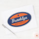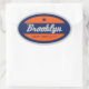 Design de sinalização oval com os bairros de Nova Iorque. Cor oficial laranja e azul da NYC. Nova Iorque do Brooklyn.