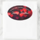 Adesivo oval, corações bokeh vermelhos em fundo preto e texto personalizável. Perfeito em sacolas de presente para os convidados do casal. Estes adesivos podem ser usados para muitas ocasiões, casamentos, aniversários, aniversário de casamento ou outro evento - personalize o texto para se adequar ao seu evento.