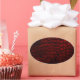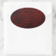O couro de jacaré é vermelho e preto, brilhante e texturizado. Será um acabamento falso, mas terá aquela aparência escamosa.