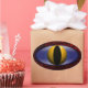 O couro de jacaré é vermelho, brilhante e texturizado. Será um acabamento falso, mas terá aquela aparência escamosa. Design adicionado inclui: oval azul para o olho, esfera amarela brilhante para o globo ocular e oval preto para o aluno.