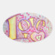 Cores d'água pintando a palavra amarela ouro "Amor" com um duplo coração. Rosa e roxo destaca as letras e o coração. Uma luz de brilho no topo dá à pintura um brilho brilhante. Personalize este adesivo de arte amorosa com seu próprio texto e imagens usando o botão "Personalizar".