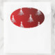 Adesivo Oval Árvores de Natal Prateadas em Vermelho