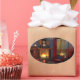 Um canto de leitura confortável num dia chuvoso de outono. Ao redor da lareira com um fogo em branco estão as poltronas vermelhas, com pilhas de livros e chás e um bule para completar o conforto. Fora de um salgueiro amarelo e um maple vermelho e uma seita de faia são obscurecidos pela chuva que sopra a janela onde um gato gengibre se senta olhando para fora.