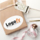 Etiquetas ovais com o logotipo Logofy preto-e-laranja