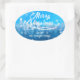 Adesivo Oval Azul Branco Neve Pacífico Floresta Feliz Natal