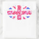 Os padrões adoráveis quase nesta bandeira britânica são bolinhas e um pequeno floral em azul e vermelho. Um pouco rústico ou desleixado. Perfeito para uma menina que ama o Reino Unido!