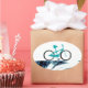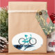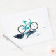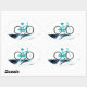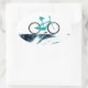 Uma bicilce de cor aqua com um assento aqua e uma armação, pedais pretos e pneus. Uma legal borda de espirais de azul e aqua acentua.