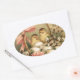 ADESIVO OVAL BILHETE ELEGANTE, GALINHAS, FLORES E OVOS LESTE