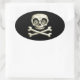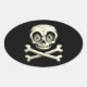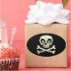 Crânio de olhos grandes e ossos cruzados, emblema da bandeira pirata Jolly Roger.