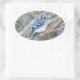 Adesivo Oval Blue Jay em uma tempestade de neve