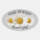 Adesivo Oval Boa Manhã Linda Cinza de Visitas Brancas