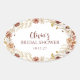 Este elegante adesivo de chá de panela de noiva apresenta uma grinalda floral de outono pintada à mão em tons quentes de rosa, bege e ferrugem, enquadrando os detalhes do evento em uma mistura de letra moderna e serifa. O design oval tem uma estética boho suave, perfeito para celebrações de outono. Ideal para selar convites ou lembranças de festa, este design complementa temas rústicos, florais e sazonais. Um toque lindo para um chá de panela de noiva de outono.