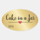 Seus amigos e familiares vão adorar este adesivo oval de "bolo em um jar" exclusivo em brilho dourado festivo com um coração vermelho fofo. Fácilmente personalizável com o nome do seu produto e outros textos.