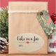 Um adesivo "bolo em frasco" oval moderno com uma letra preta num fundo de papel kraft embelezado por um coração vermelho giro. Personalizar texto.