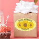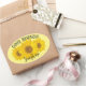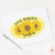 Três girassóis amarelos brilhantes com o texto "Bom dia sol" em fundo amarelo claro.