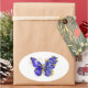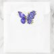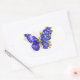 Borboleta de flores cinza, azul, safira, espumante com asa decorada com flores preciosos azuis com folhas de ouro sobre fundo branco.