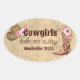 Vire-se para diversão com essa cowgirl, que se personalizava, temia rustic, rosa, floral, de destino Nashville, adesivo "Cowgirl me leva embora". O acessório perfeito para seu aniversário de destino, festa de solteira, vaqueira, país, ou festa ou viagem temática ocidental! Crie momentos memoráveis em seus convites, bolsas de presente, favoritos para festas, bolsas de troca e muito mais! Personalizável para qualquer destino ou data, esta é a maneira perfeita de começar a festa! Precisa de ajuda para personalizar ou quer transferir para outro produto? Clique no botão "Bate-papo conosco" e um membro da equipe de design do Zazzle pode ajudá-lo com quaisquer mudanças. Todos os designs são protegidos por direitos autorais por FeliseDesigns.