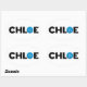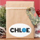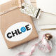 O nome Chloe com a letra O como um botão. as cores podem ser alteradas.
