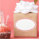 Este adesivo branco tem uma borda vermelha brilhante. O adesivo e a borda têm a forma de um oval.