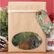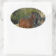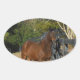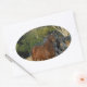 Adesivo Oval Cavalo castanho contra cerca