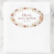 Este adesivo de chá de noiva elegante apresenta uma grinalda floral de outono pintada à mão em tons quentes de rosa, bege e ferrugem, enquadrando os detalhes do evento em uma mistura de letra moderna e serifa. O design oval tem uma estética boho suave, perfeita para celebrações de outono. Ideal para selar convites ou lembranças da festa, este design complementa temas rústicos, florais e sazonais. Um toque lindo para um chá de noiva de outono.