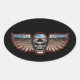 Crânio de cromo molhado com asas refletindo uma autoestrada do deserto com céus claros e azuis. Tinta e aerógrafo em t-shirts, capuzes, cartas, presentes.