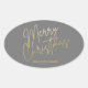 Adesivo Oval Cinza Dourada Feliz Natal de Luxo