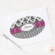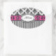 Adesivo Oval Cinza Paris Rosa e Black Damask and Stripes