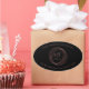 Círculos geométricos abstratos minimalistas dourado rosa colocados em um fundo preto impressionante com um monograma inicial manuscrito.