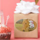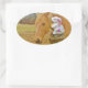 Adesivo Oval Coelho branco e cavalo amarelo loiro