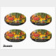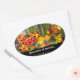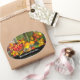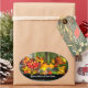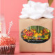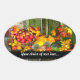 Um adesivo colorido com frutas e vegetais, flores e folhas por cerca de madeira, adicione o texto de sua escolha.
