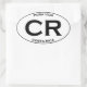 Representando a Costa Rica, este adesivo oval estilo Euro apresenta as letras CR em letras grandes. Este logotipo é legendado pelas palavras "Costa Rica" e "Pura Vida".