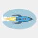 Adesivo Oval Crianças Blue Rocket Navio Espaço Exterior Bonito