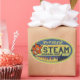 Outro produto de paródia revolucionário da DeVilco Machinations: Fábrica Vaporizada Nave de Limpeza de Vapor! "Está quente como o inferno ou sua alma de volta!" Rótulo com desenho animado, estilo retrô autêntico, camisetas e artigos de presente.