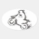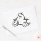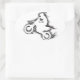 Uma silhueta invertida em escribble preto revelando um motociclista puxando uma roda