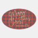 Adesivo Oval Dourada Xadrez Vermelha de Natal Feliz