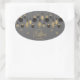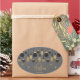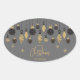Os ornamentos das árvores de Natal pretas e douradas e os flocos de neve nas cinzas destacam esses adesivos de Natal ovais com seu nome e Feliz Natal em letra chic. Perfeito para as suas festas de férias pessoais ou profissionais. CORRESPONDENTE a itens na nossa coleção.