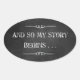 Os adesivos Oval Criam adesivos personalizados para cada ocasião! Personalize uma variedade de imagens existentes ou adicione sua própria foto, logotipo ou texto. A escolha perfeita para qualquer mensagem ou design, adesivos ovais são excelente para envios especiais, raspagem e exibição de sua arte favorita. 4,5" x 2,7" (4 adesivos por folha) Alta qualidade, cor de cheio, impressão com sangramento de cheio Frente resistente ao cratch, fácil descolamento e colagem Não há ordem mínima