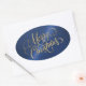 Adesivo Oval Feliz Natal Dourado e Blue Emboscada