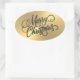 Adesivo Oval Feliz Natal Dourado, Olhar Esboscada