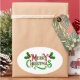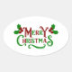 Adesivo Oval Feliz Natal Verde e Gráfico Vermelho Holly
