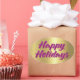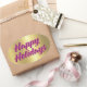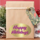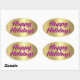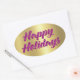 Adesivo Oval Felizes Feriados Magenta Rosa, Brilho Dourado