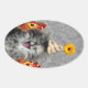 Adesivo Oval Festa bonita gatinha em fundo úmido
