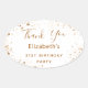 Adesivo Oval Festa de aniversário branco dourado nome brilhante