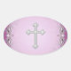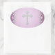 Adesivo Oval Flocos de envelopes da ventoinha com cruz rosa