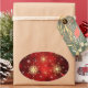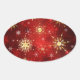 Adesivo Oval Flocos de neve do Ouro de Natal em Fundo Vermelho