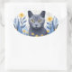 Adesivo Oval Flores Amarelas do Gato Azul Russo